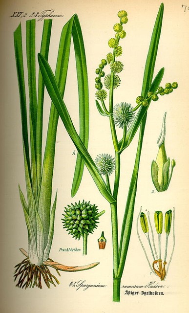 Lateinische Namen: Sparganium erectum, Sparganium polyedrum, Sparganium ramosum